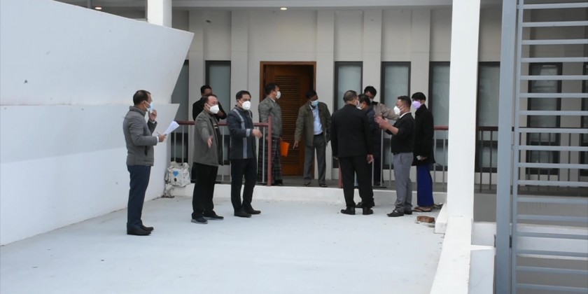Similarly, the Chief Minister, State Ministers and Departmental officials inspected the construction status of the State Government Guest House on Strand Road of MyitKyiNa Township in this morning, the structure of the meeting halls, bedrooms, and living room. Then, the chief minister coordinated necessary matters.