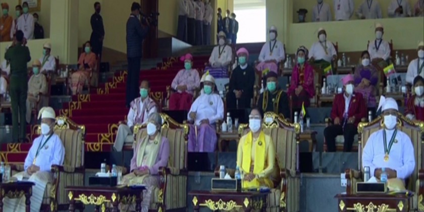 With the national objectives of All ethnic nationals to safeguard non-disintegration of the Union, national unity and sovereignty forever; To perpetually ensure strengthening dynamic Union Spirit which is a genuine patriotic spirit; To further strive for the perpetual existence of the country through strong and united strength of all ethnic national brethren; To build the Union based on democracy and federalism in the realization of genuine, disciplined multiparty democracy; and To equalize development of all regions and states while making efforts for the enhancement of health, education and job opportunities of the ethnic nationals, the Republic of the Union of Myanmar celebrated the Diamond Jubilee Union Day 2022 with the State flag hoisting ceremony and grand military review, in Nay Pyi Taw, Saturday.
