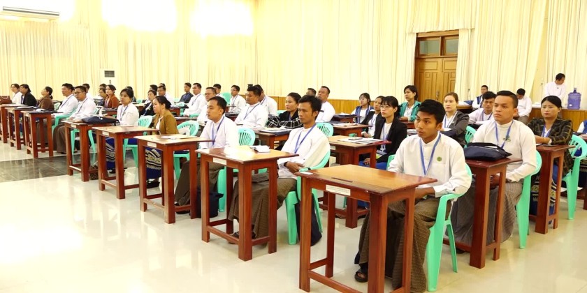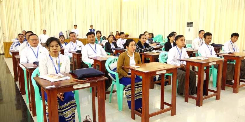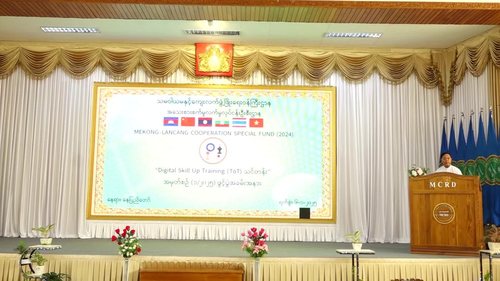 Union Minister for Cooperatives and Rural Development U Hla Moe attended the opening ceremony of the "Digital Skill Up Training (TOT)" Course No. (1/2025), organized by the Department of Small Scale Industries, at the assembly hall of the Ministry on January 6 and delivered the opening speech.