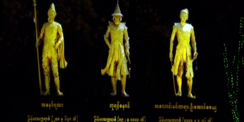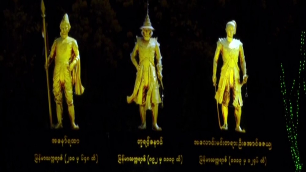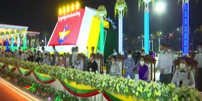 In commemoration of the 77th Anniversary of the Armed Forces Day, drones were used to display the banners of the 77th Armed Forces Day, map and flag of Myanmar and symbols of Tatmadaw (Army, Navy and Air.