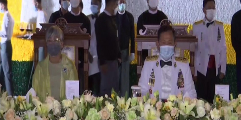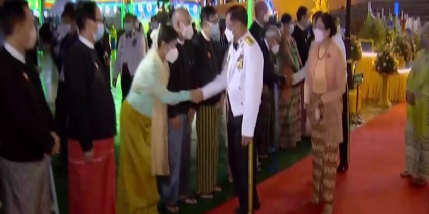 At the beginning of the dinner, fireworks were launched from the military parade ground and Bayintnaung Villa. Also present at the Ceremony were Vice-Chairman of the State Administration Council Deputy Commander-in-Chief of Defence Services Commander-in-Chief (Army) Vice-Senior General Soe Win and wife Daw Than Than Nwe as well as many other high ranking officials.