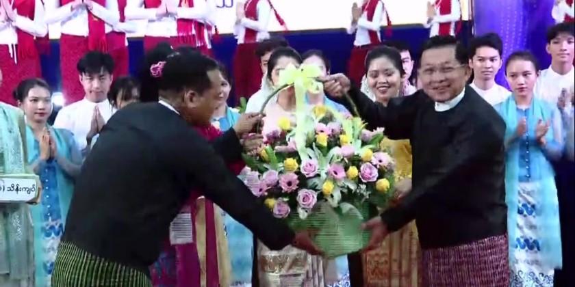 Upon his arrival at the honorary dinner, the Prime Minister was warmly greeted by Union Minister for Science and Technology Dr. Myo Thein Kyaw and other dignitaries. He then had the dinner together with the guests while enjoying the music and dance performances presented by the entertainment troupes from the Department of Fine Arts, Myanma Radio and Television and the Directorate of Public Relations and Psychological Warfare.