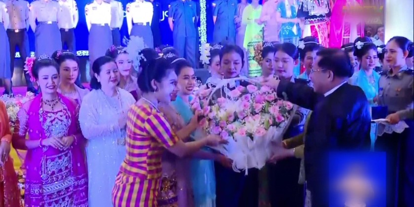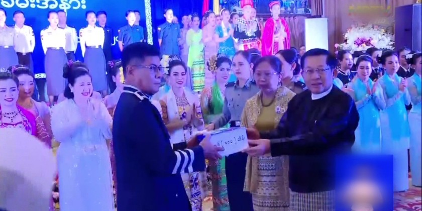 During the dinner reception, police members of the Police Band under Myanmar Police Force, artistes from the Ministry of Religious Affairs and Culture and Myawaddy Music Band performed with songs and dances. The Acting President and wife presented honoury flower basket and cash rewards to the police members and artists.