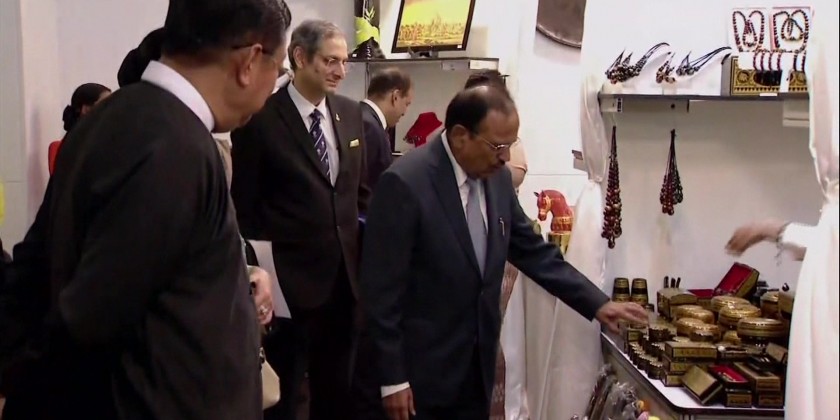 First, Union Minister Admiral Moe Aung, National Security Chiefs of BIMSTEC and their wives viewed round the displays of Myanmar traditional handicrafts, traditional souvenirs and souvenirs shops.