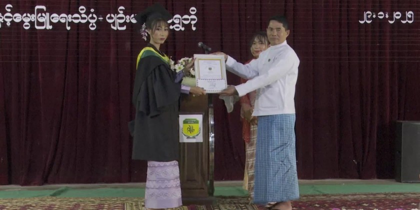 Following this, the Union Minister presented awards to the top three winners from the first to third years in the Diploma course in Agriculture and Diploma course in Livestock at the Institutes of Agriculture and Livestock (Pyinmana and Shwebo) and a group photo was taken with the guests and graduates.