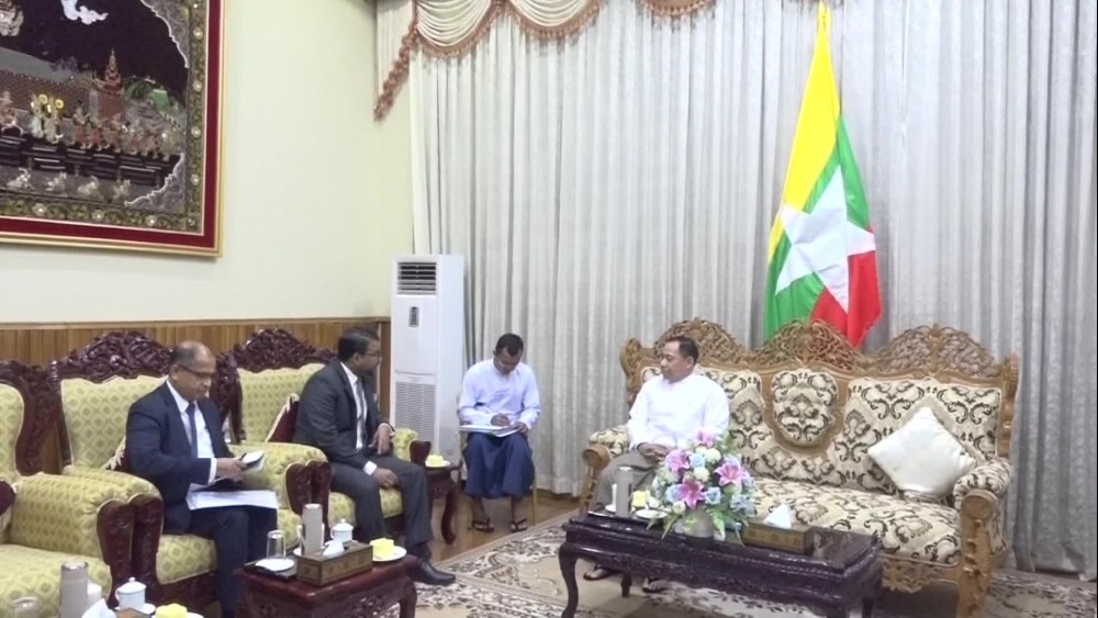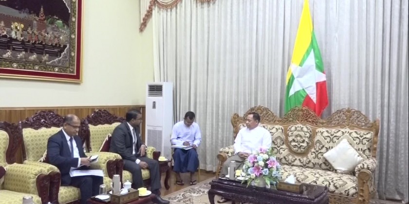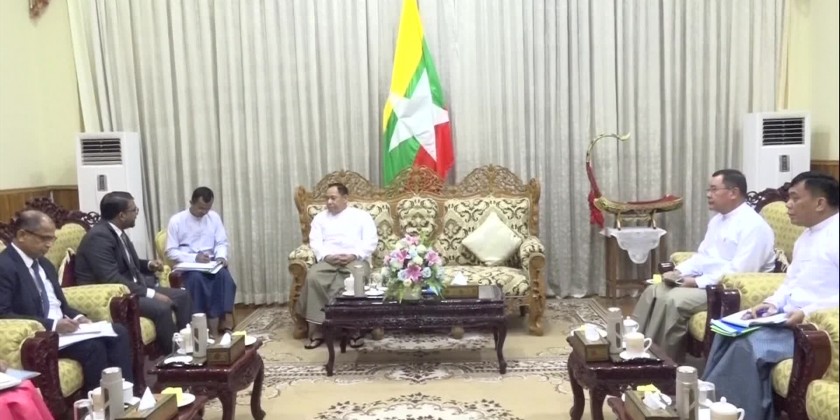 Member of the State Administration Council Union Minister for Home Affairs Lt-Gen Yar Pyae received the Sri Lankan delegation led by Tharaka Balasuriya, State Minister for Foreign Affairs of Democratic Socialist Republic of Sri Lanka on Monday at his Ministry in Nay Pyi Taw.