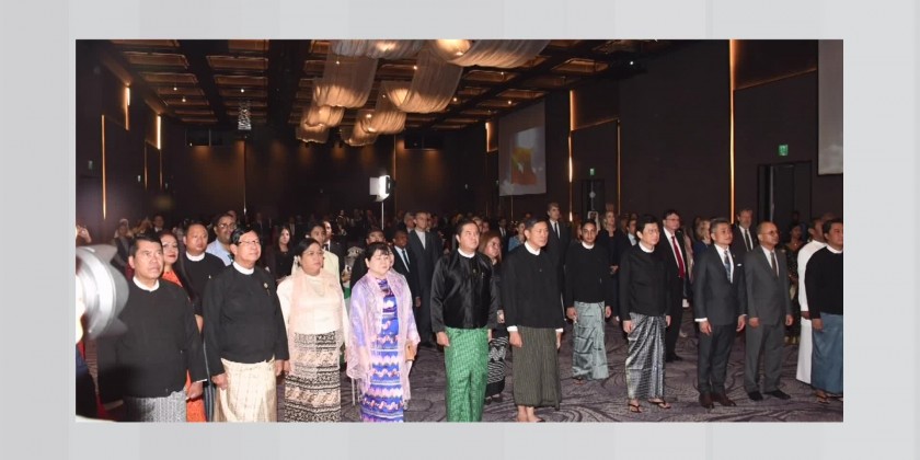 Union Minister at the State Administration Council Chairman's Office, U Ko Ko Hlaing, and his wife attended the ceremony, which commenced with the singing of the national anthems of the two countries.
