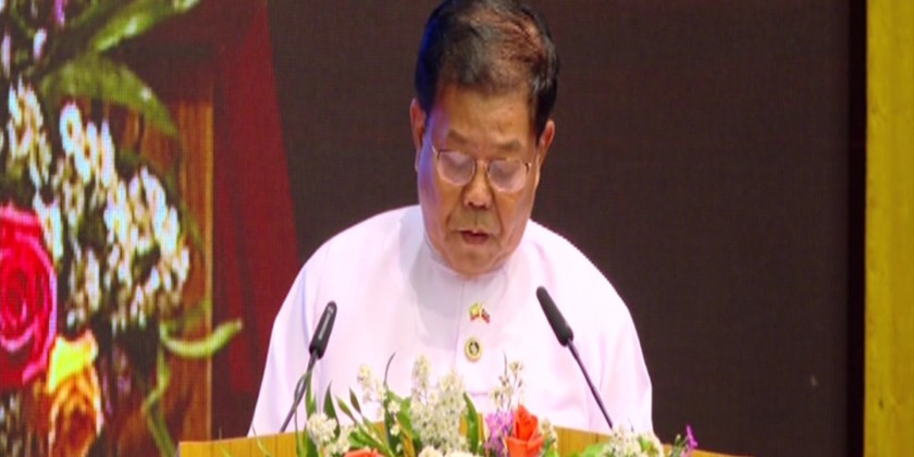 Union Minister for Foreign Affairs U Than Swe read out the congratulatory message conveyed from the Chairman of the State Administration Council Prime Minister Senior General Min Aung Hlaing to President of the Russian Federation Mr. Vladimir Putin on the Diamond Jubilee occasion, and delivered a speech.