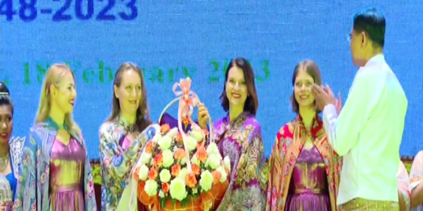 Afterwards, member of the State Administration Council, Deputy Prime Minister and Union Minister for Defence General Mya Tun Oo presented a flower basket to the Russian artistes and the Russian Ambassador presented a flower basket to the Myanmar artistes.