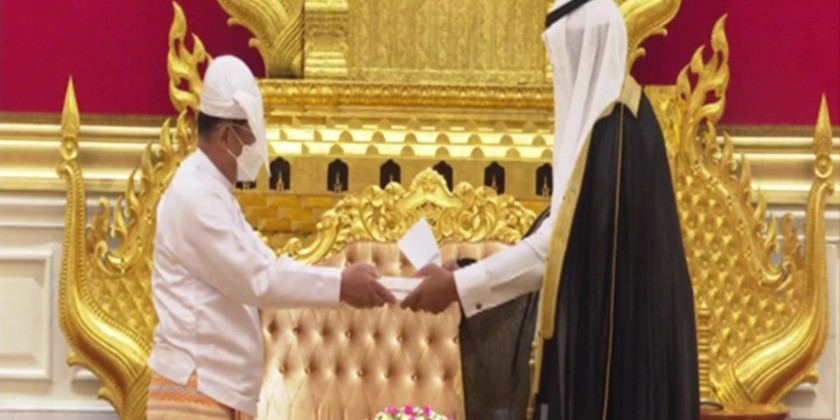 Chairman of the State Administration Council Prime Minister Senior General Min Aung Hlaing accepted the Letters of Credence of the newly-accredited Ambassador of the Kingdom of Saudi Arabia to the Republic of the Union of Myanmar Mr. Saud Bin Abdullah Al-Subaie at the Credentials Hall of the SAC Chairman in Nay Pyi Taw on Thursday.