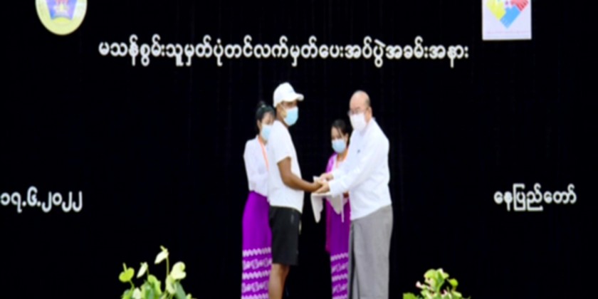 Union Minister for Social Welfare, Relief and Resettlement Dr Thet Thet Khaing and officials presented the registration cards to 52 persons with disability from Pobbathiri Township.