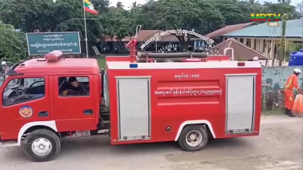 Also, information of natural disasters and disaster awareness pamphlets were distributed to the students. The Drill continued with the emergency rescue personnel from the Buthidaung Fire Services Department holding practical demonstration concerning with the natural disaster.