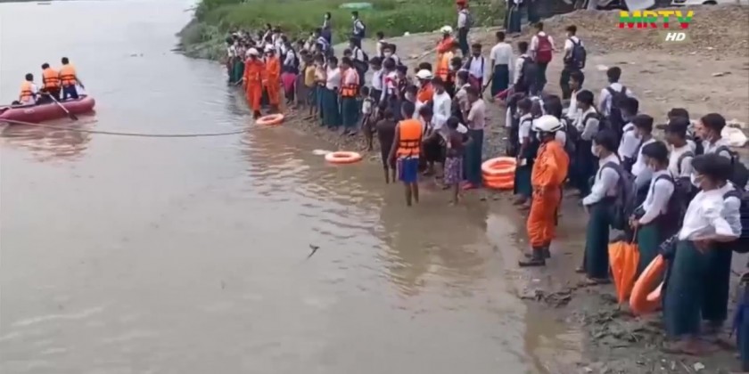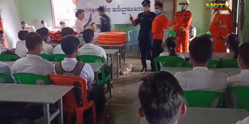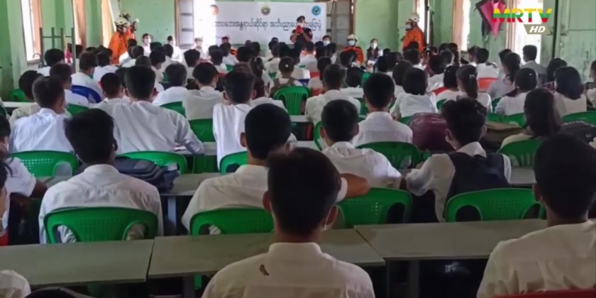 In Rakhine State, with the cooperation of Fire Services Department and Department of Disaster Management, the Disaster Awareness Programme and Drill on flood risk was conducted to the students at the Sub-basic Education High School and No. 3 Basic Education Middle School in Buthidaung Township of Maungdaw District.