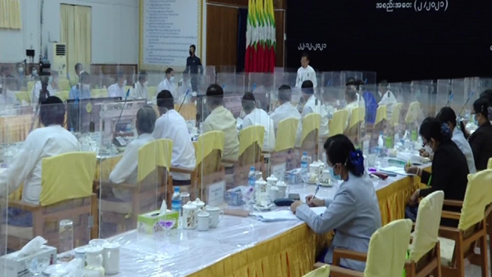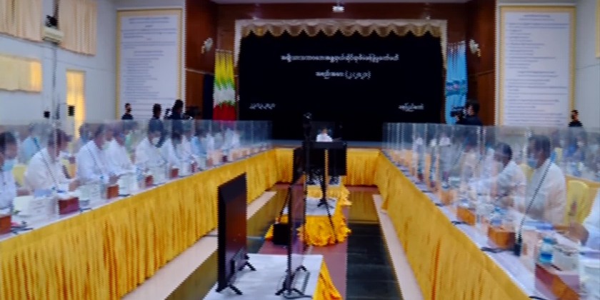 The Chairman of the National Natural Disaster Management Committee Vice-Chairman of the State Administration Council Deputy Prime Minister Vice-Senior General Soe Win delivered an address at the meeting 2/2021 of the Management Committee at the Ministry of Social Welfare, Relief and Resettlement in Nay Pyi Taw, Wednesday afternoon.