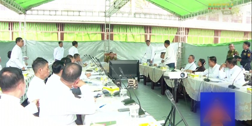 Committee Chairman State Administration Council Vice Chairman Deputy Prime Minister Vice-Senior General Soe Win presided over the meeting and discussed ways to expedite relief efforts in earthquake affected areas.