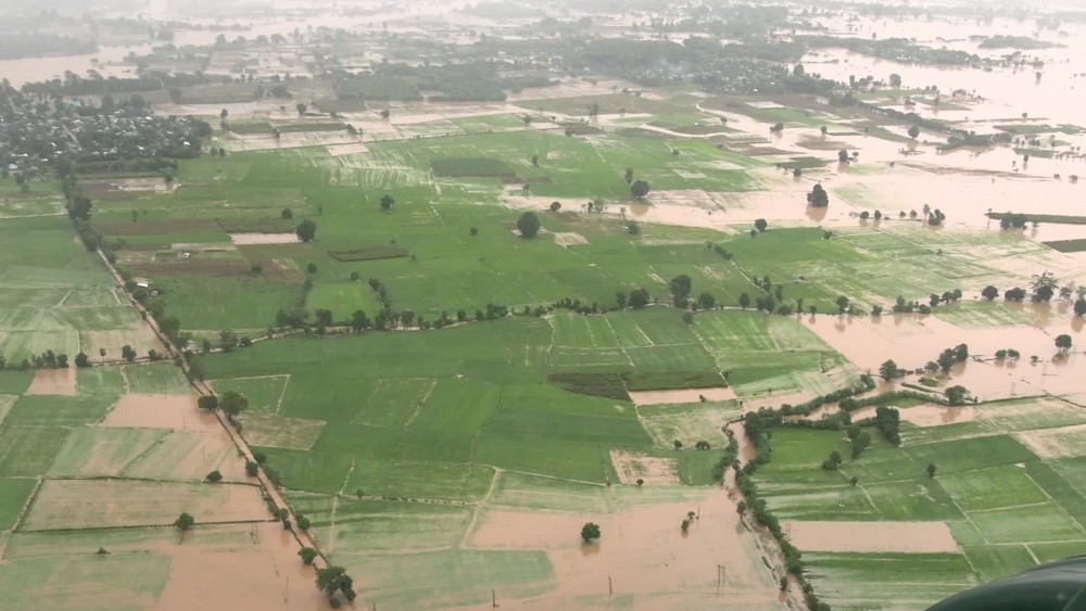 They then assessed the health care provided by the Township Public Health Department to the displaced individuals and inspected water encroachment on RazaHtarNi and PaungLaung Roads.Later in the evening, the Chairman and officials conducted an aerial inspection of the flood conditions in Nay Pyi Taw and along the Sittaung River by helicopter, coordinating efforts to enhance rescue operations.