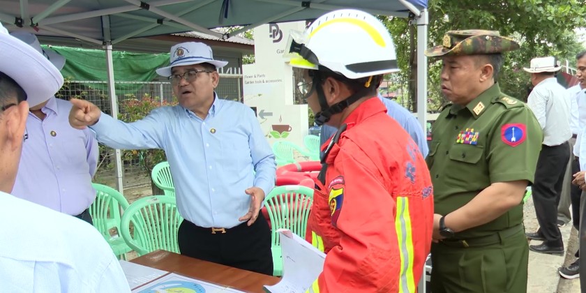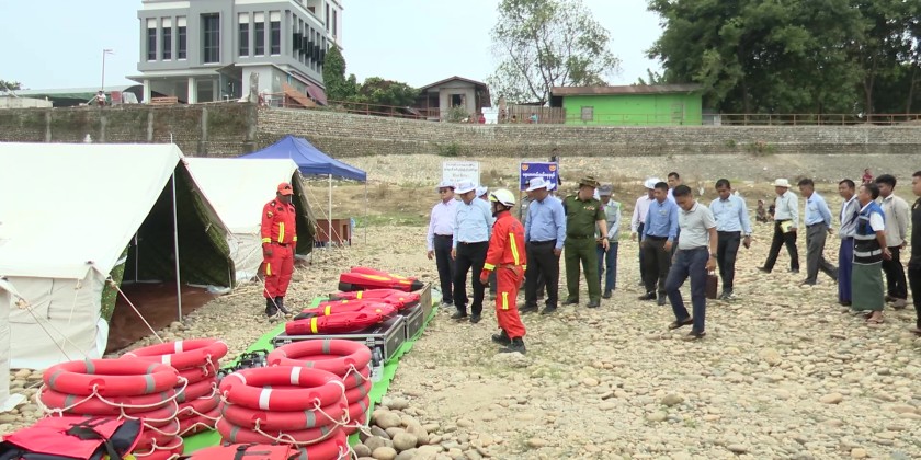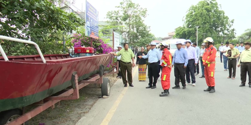 Chief Minister U Khet Htein Nan oversaw the activities held at Sitarpu Bridge, Kyun Pin Thar Jetty, Aung Bridge and Manaw Upein Bridge. Members of Fire Brigade, departmental personnel and civil social organizations participated in the drill, along with the machinery, vehicles and rescue equipment.