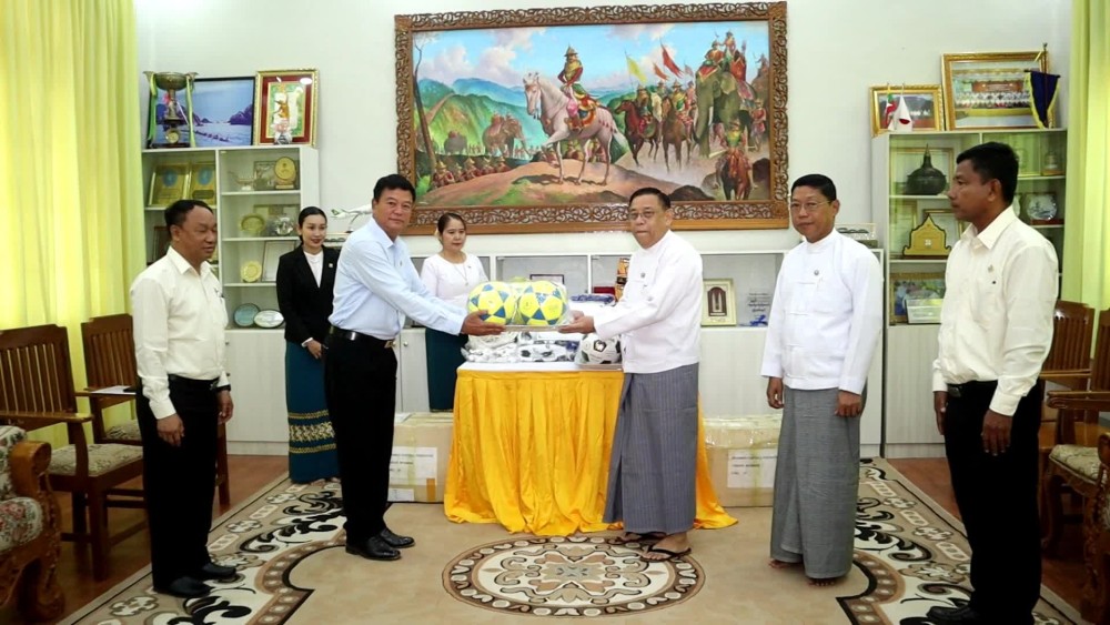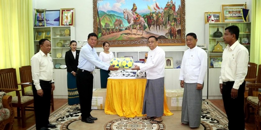 The meeting focused on the development of sports and youth affairs. After the discussion, the Union Minister presented necessary sports equipment to the Tanintharyi Region Chief Minister to support the region in developing a new generation of athletes.