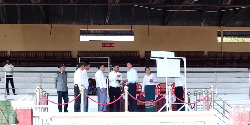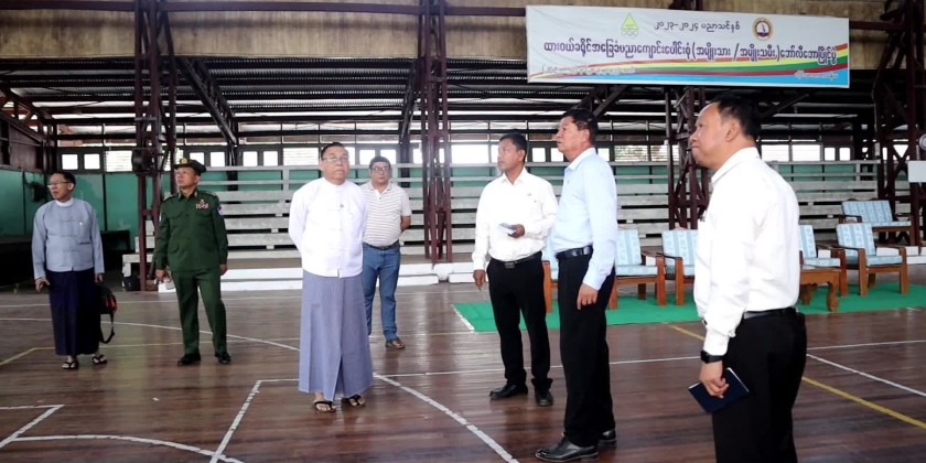 Following this, the Union Minister, along with the Chief Minister and relevant officials, visited the indoor stadium, the sports field, as well as the Futsal Court at Shwe Wei Thiri square, ShweWaiThiri Sports Hall for inspections. During the visit to the ShweWaiThiri Sports Hall, the Union Minister met and encouraged young volleyball players in training.