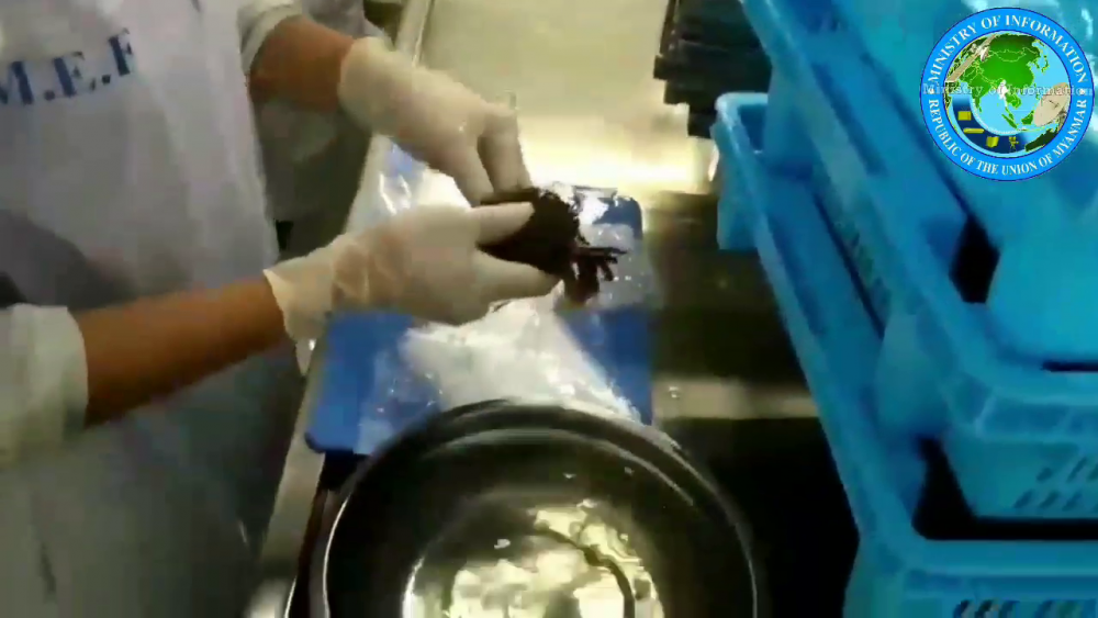 Officials from the Department of Fisheries inspected preparations to prevent the spread of disease at the cold storage plants in line with the instructions of the Ministry of Health and Sports. They also looked into the soft shell crab breeding ponds in Labutta District of the Region during the COVID-19 period.