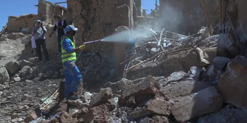 Local authorities and teams from earthquake-hit Morocco have initiated sterilization operations in homes, villages, and neighborhoods within the areas affected by last week's earthquake.
