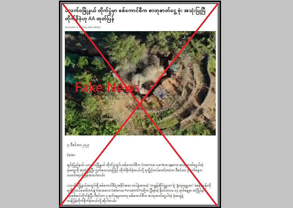The disinformation of illegal medias accused of attacking with chemical bombs using fighter jets by Tatmadaw during armed engagement with AA terrorist insurgent group in Palatwa Township of China State is spreading through online medias.