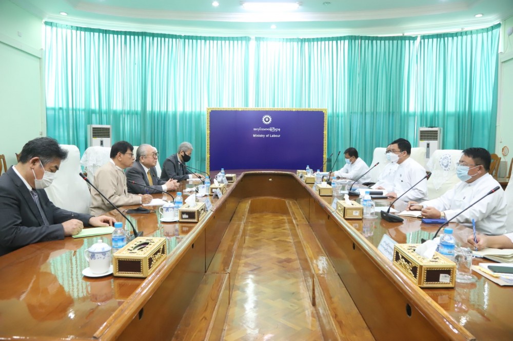 At the meeting, the Union Minister discussed dispatching of trainee employees by signing MoC between the Ministry of Justice, the Ministry of Foregin Affairs, the Ministry of Health, Labour and Welfare of Japan and the Ministry of Labour of Myanmar through G to G program, human resoruce development in Myanmar, providing assistance of Japan to Myanmar on-job and skilled workers in going work to Japan and bilateral cooperaton.