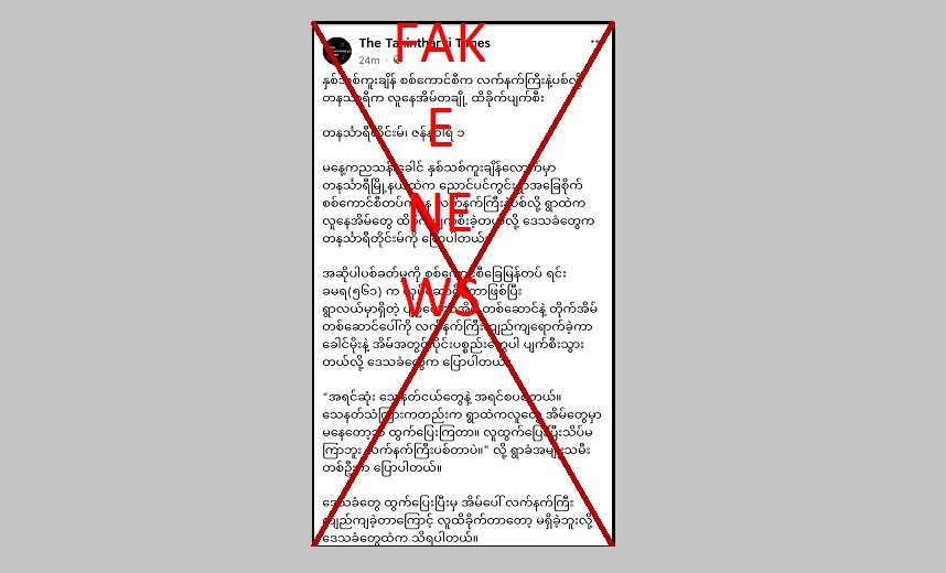 It's found out that the fake news and disinformation describing that some houses have been destroyed due to the explosion of heavy weapons fired by the Tatmadaw at the midnight of New Year Eve targeted Nyaungpingwin Village in Taninthayi Township of Taninthayi Region are being disseminated.