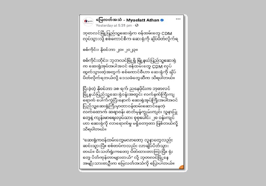 The pieces of fake news featured that Butalin People’s Hospital in Sagaing Region has been sealed since all health workers serving in it have participated in Civil Disobedient Movement (CDM) are spreading on the social media.
