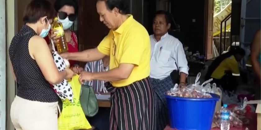 Myanmar Motion Picture Organization donated rice, cooking oil, onion and duck eggs to the people from the film industry for 13th time. The Organizer of Myanmar Motion Picture Organization said that it is estimated that there were about 1500 people who received the donation.