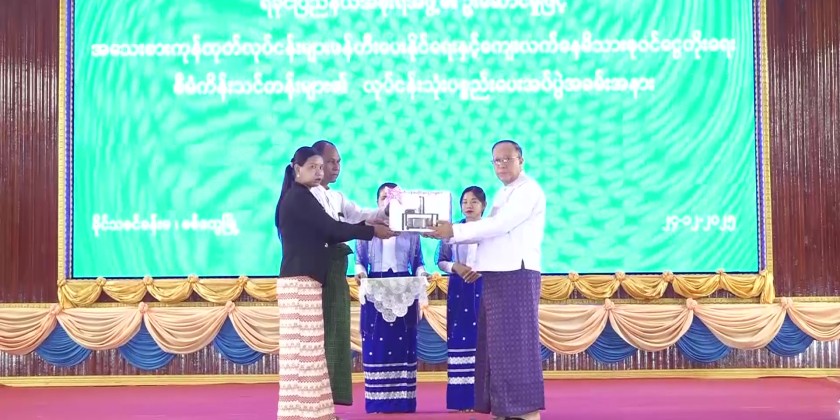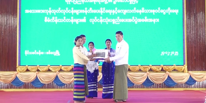 At the ceremony, Chief Minister U Htein Lin stated that the Rakhine State Government is making concerted efforts, across all sectors and to the fullest extent possible, to meet the needs necessary for the socio-economic development of local communities. He said that entrepreneurs would be selected from among those who had attended the training courses opened by the Rakhine State Department of Small Industries and would be provided with production equipment to enable them to establish their businesses. He also urged prospective entrepreneurs to continuously build upon the knowledge and skills taught in the training courses, to improve the quality of their products and packaging systems, and to work toward securing market access.