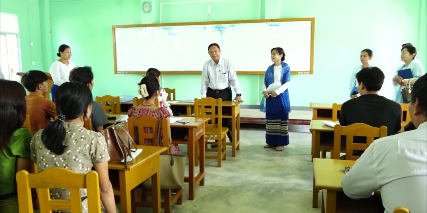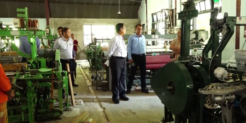 In meeting with the final-year students and teachers, the Union Minister coordinated the requirements upon the reports. After that, the Union Minister and party looked into Saunder’s Weaving Institute in Amarapura Township, Mandalay where the Principal made clarifications on the training courses upon which the Union Minister coordinated the needs.