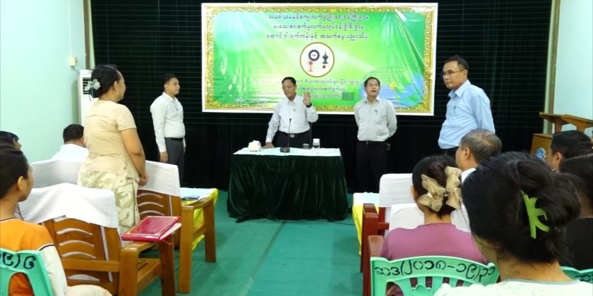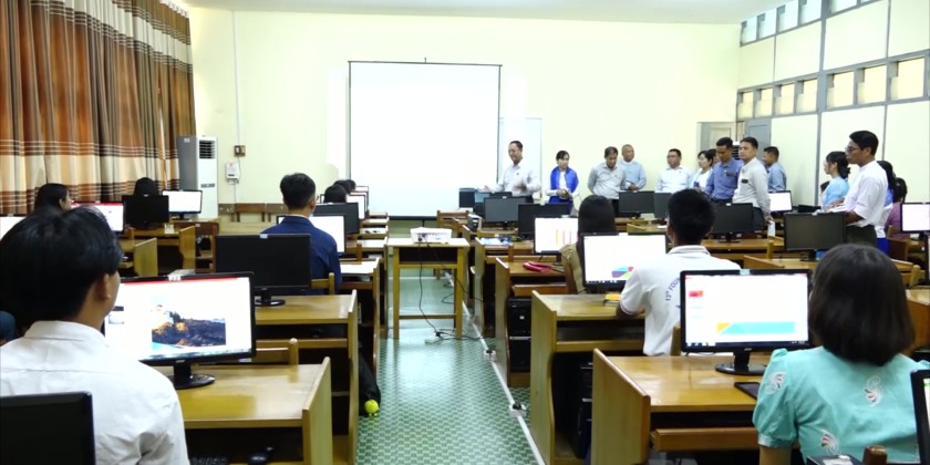 The Union Minister then inspected the reconstruction processes of the quake-effected buildings and different kinds of weaving courses. On arrival at Cooperative Accounting and Vocational Training Centre (Mandalay), the Union Minister and party inspected the construction of the 3-storey dormitory for trainees where they coordinated the needs.