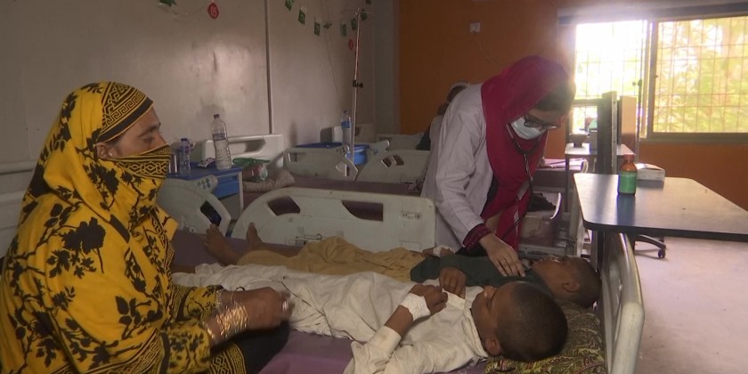 Doctors in Pakistan treat children with water borne diseases amid monsoon season while Prime Minister Shahbaz Sharif asked Friday for international help battling deadly flood damage in the impoverished Islamic nation.