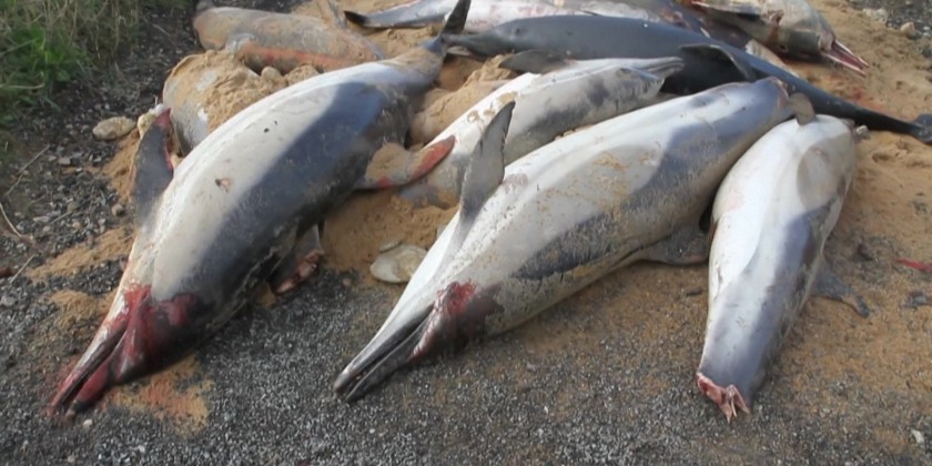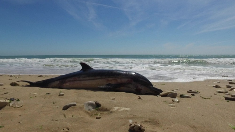 Dolphins washed up on beaches of the Atlantic coast in France and the French government will temporarily ban almost all commercial fishing in the Bay of Biscay from Monday to protect dolphins, much to the dismay of the industry.