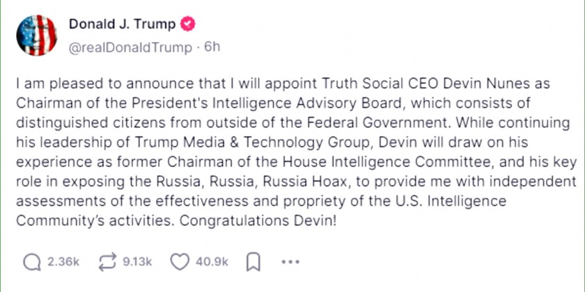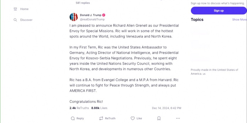 President- Elect Donald Trump has appointed Richard Grenell to serve as his envoy for Special Missions. Grenell is a longtime foreign policy adviser for Trump. He has previously served as Ambassador to Germany and as Acting Director of National Intelligence. In his announcement on Truth Social, Trump said that Grenell will “work in some of the hottest spots around the World, including Venezuela and North Korea.”