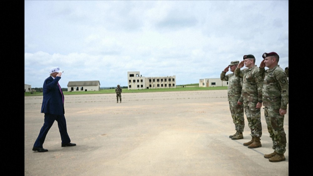 He also vowed to restore the base's original name, Fort Bragg, in honor of World War II paratrooper Roland L. Bragg, not Confederate General Braxton Bragg. The visit featured a significant military display, including aircraft flyovers, paratrooper drops an, serving as a prelude to a grand military parade scheduled for June 14, in Washington, D.C.