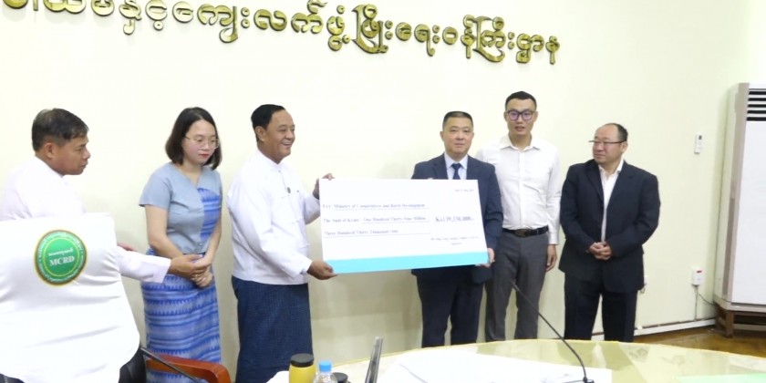 Later, Union Minister U Hla Moe said that this is auspicious occasion for the Minsitry but for Myanmar and its people to make cash donation for carrying out drilling tube wells, water tower and solar water pumping system in 5 villages of Bago and Magway regions.