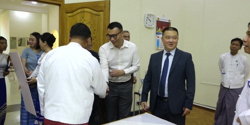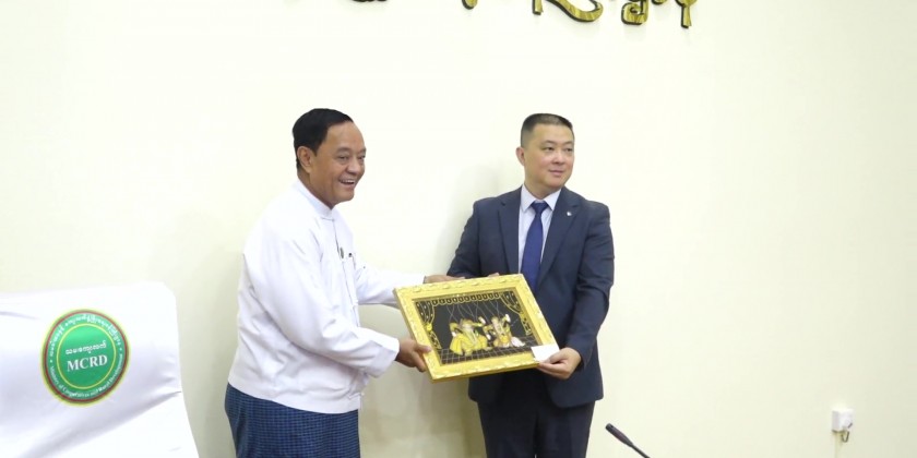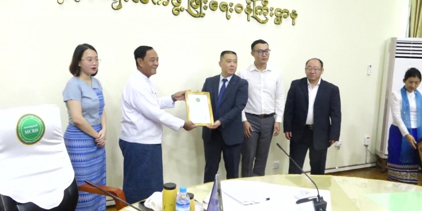 At the event, leader of delegation explained about the intention of the Lingguang Temple Sayadaw to dig artesian wells for 5 villages in Myanmar and presented donated cash to Union Minister for Cooperatives and Rural Development who gave in turn certificates of honour.