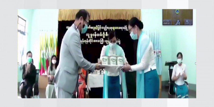 The ceremony of donating baby formula goat milk tins by ILDONG FOODIS Co, Ltd in Seoul of the Republic of Korea for the children taking care in the residential nurseries opened by the Social Welfare Department under the Ministry of Social Welfare, Relief and Resettlement and children looking after in the philanthropic homes opened under the supervision of the Social Welfare Department was held in the morning on 20th January via Virtual Mode and the Union Minister for Social Welfare, Relief and Resettlement Dr. Thet Thet Khine, permanent secretary, director-generals, deputy director-generals, head officer of Yangon Region Social Welfare Department and responsible persons from the donors ILDONG FOODIS Co, LtdĀ and SUN SHINE YANGON Co, Ltd attended the ceremony.