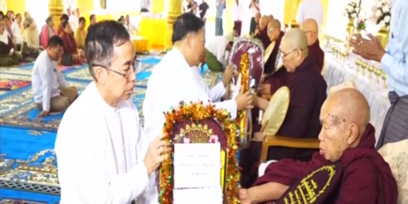 During the ceremony, Commander of Southwest Command Brig-Gen Wai Lin presented cash donation, contributed by Chairman of the State Administration Council Prime Minister Senior General Min Aung Hlaing, on his behalf.