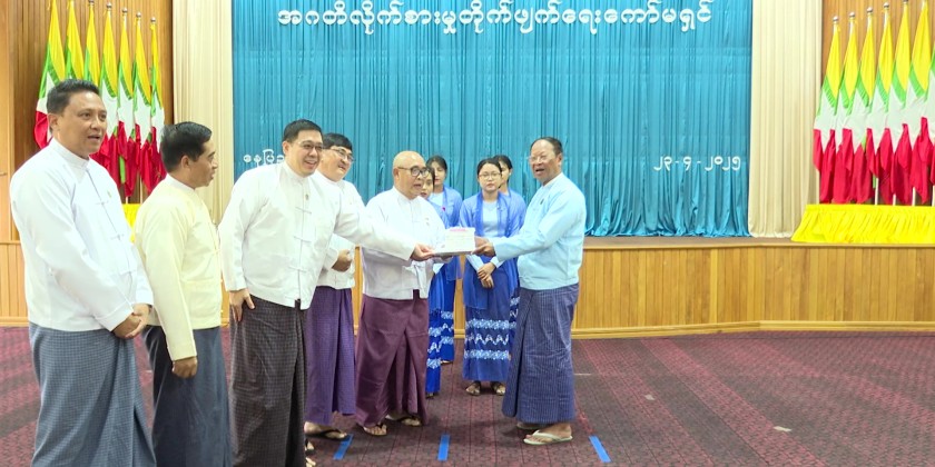 Subsequently, Chairman of the Myanmar-China Friendship Association (Central), presented a donation of 20 million kyats to the Commission Chairman. In return, Commission Chairman presented a certificate of honor and gifts bearing the Commission's emblem to the Chairman of Myanmar-China Friendship Association, after which the ceremony concluded.