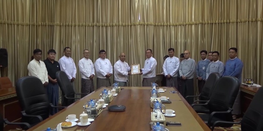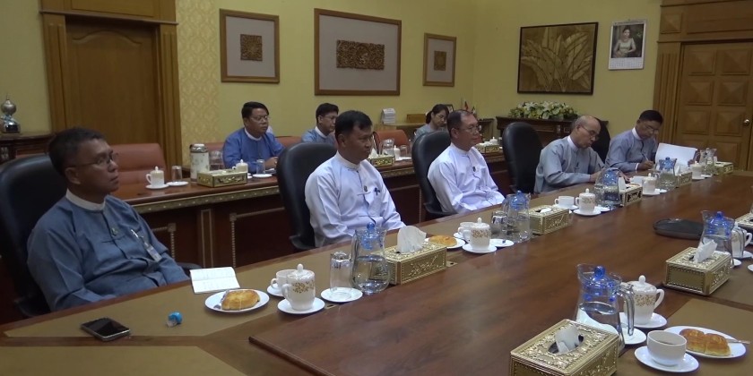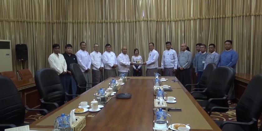 Union Minister U Khin Maung Yi, Deputy Minister U Min Thu, permanent secretaries, and department heads attended the donation ceremony. The chairman of the Myanmar-China Friendship Association (Central) clarified matters related to the donation, and the Union Minister accepted the donated items, expressed gratitude, and presented a certificate of honor in return.