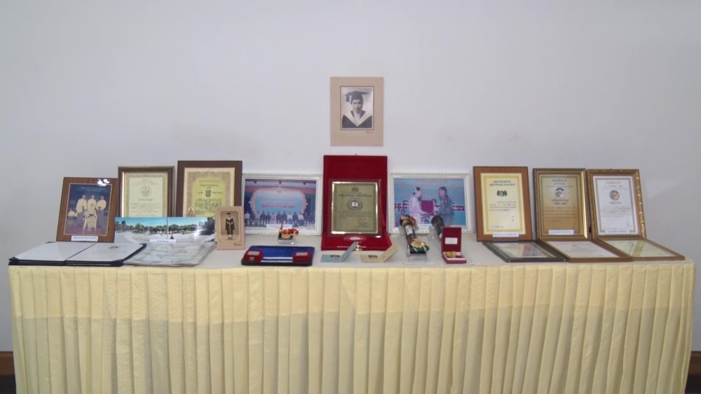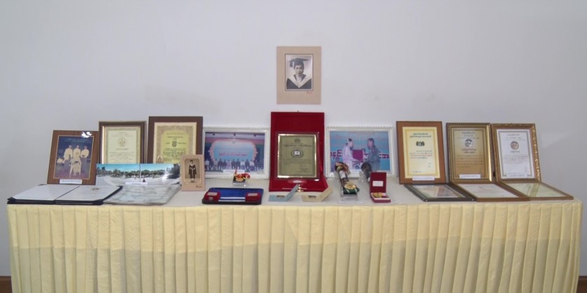 She received five National Literary Awards, Life-Time Lterary Award and Pakokku U Ohn Pe Lifetime Literary Award. She also won the Medal (First Class) for Excellent Performance in the Field of Art, Outstanding Women Awards and was honoured with the “Sithu” title by the State. Union Minister for Religious Affairs and Culture U Ko Ko expressed thanks for donating the valuable items for public studies.