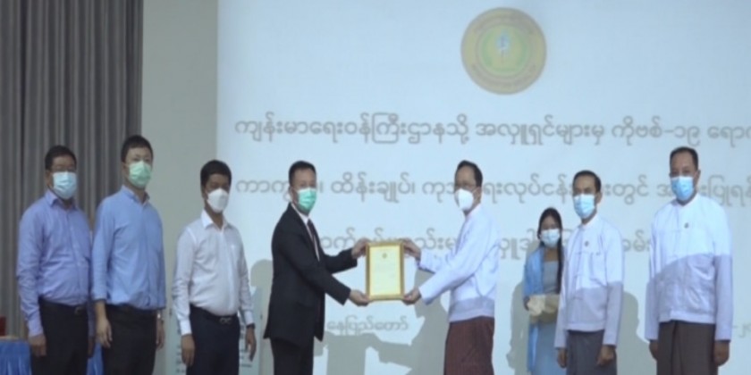 At the donation ceremony, officials from the Myanmar Quarry-Infrastructure Development Public Company Limited and Novel Shining Star Company Limited explained the purposes of the donation and handed over the donated medical devices including 100 10L oxygen concentrators, 200 suits of PPE level-3, 100 pulse oximeters and five oxygen concentrators to the Union Minister for Health Dr Thet Khaing Win.
