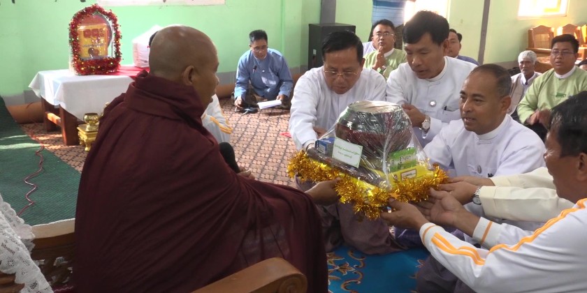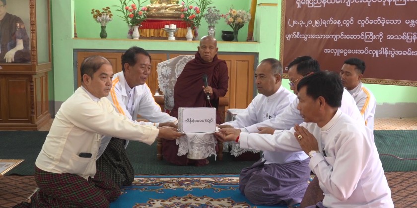 The Shan State Chief Minister and state ministers offered alms and offertories to the presiding Sayadaw. Chief Minister U Aung Aung and state ministers then handed over a donation of 100 million Kyats contributed by the Shan State Government to officials from the Board of Trustees, who received it and returned certificates of honor in appreciation.