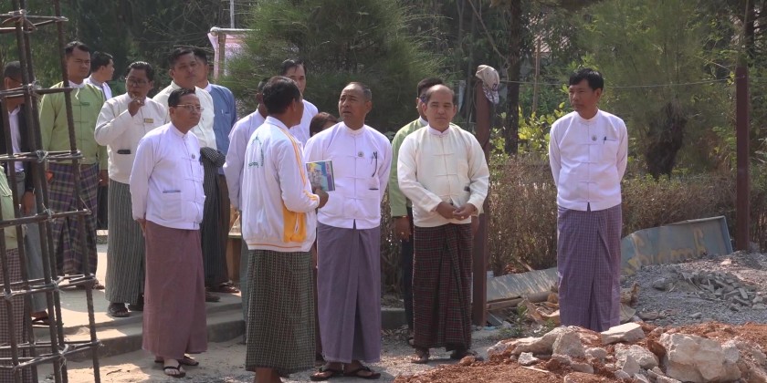Shan State Chief Minister U Aung Aung, accompanied by officials, visited the Shan State Presiding Monks Training School in Ayetharyar Town, Taunggyi Township, on April 1 to donate funds for the reconstruction of the Sotujana monastery building, which was damaged by the Mandalay earthquake.