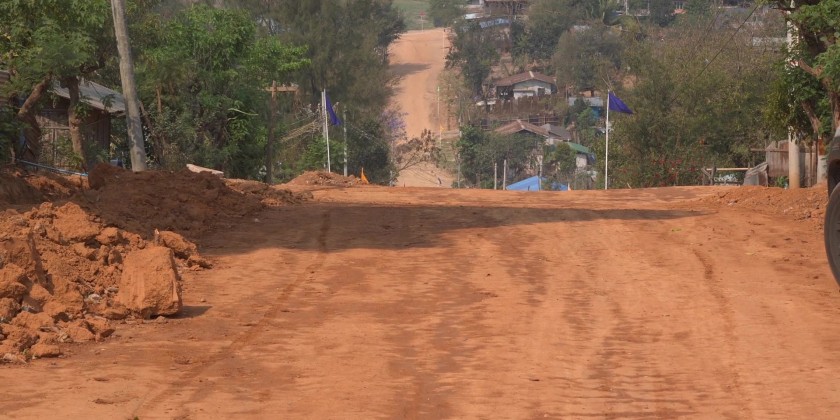 From there, the State Chief Minister and officials went to inspect the designated site for upgrading Aye NyeinThida Road in Ward No. (9), Ayetharyar Town, Taunggyi Township, from an earthen road to an asphalt road. An official from the Township Development Affairs Department provided a briefing on the project. The State Chief Minister then gave necessary supplementary instructions and inspected the road condition.