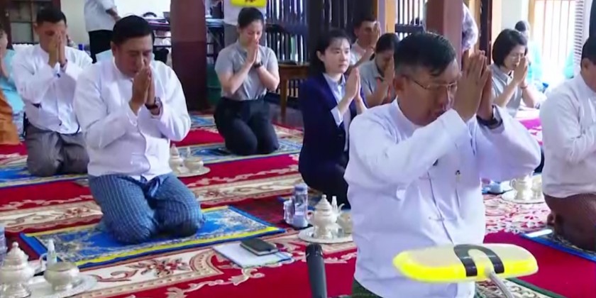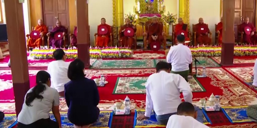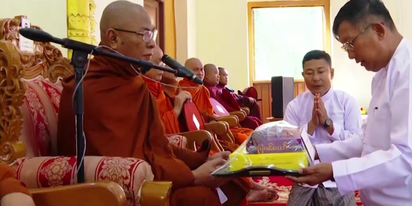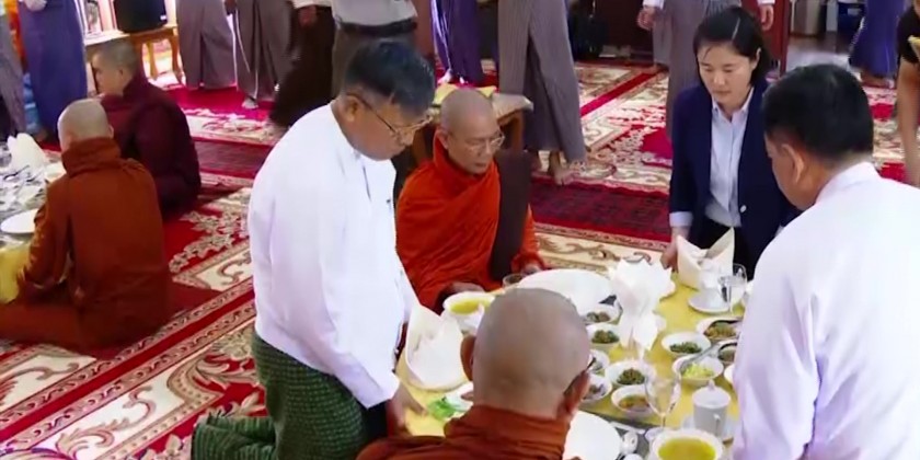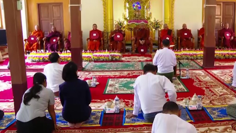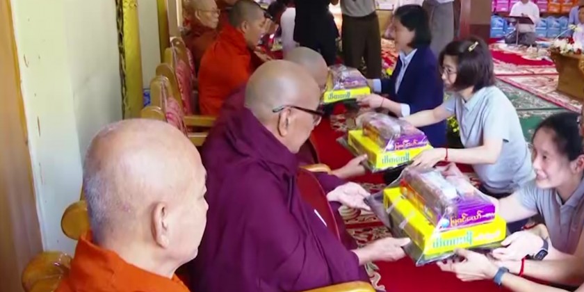 First, they took Five Precepts from Nay Pyi Taw Sangha Nayaka Committee Chairman Dr Bhaddanta Munikumara. Then, the Union Minister explained the donation that describes bilateral relations between Myanmar and China.
