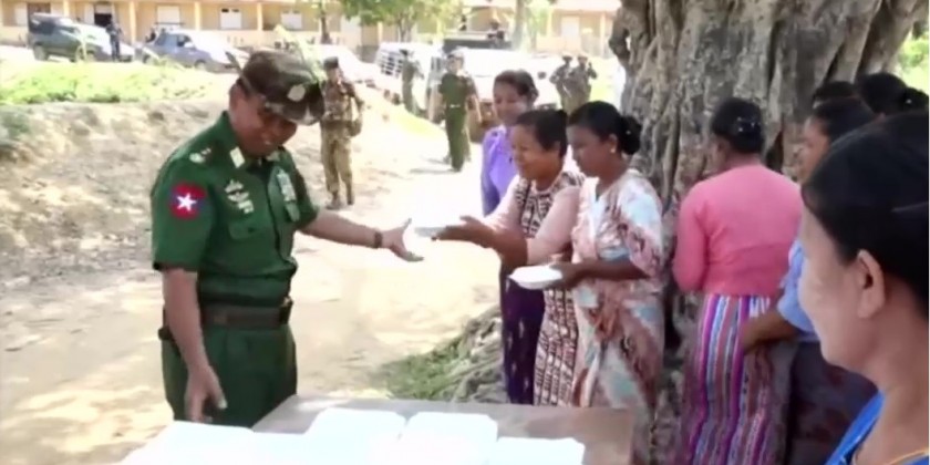 And, Lt. Gen Phone Myat and Commander of the Western Command General Htin Latt Oo visited the places of foods preparations and officials reported about carrying activities. Also, departmental officials provided lunch boxes to the public in crowed areas of Mrauk-U township.